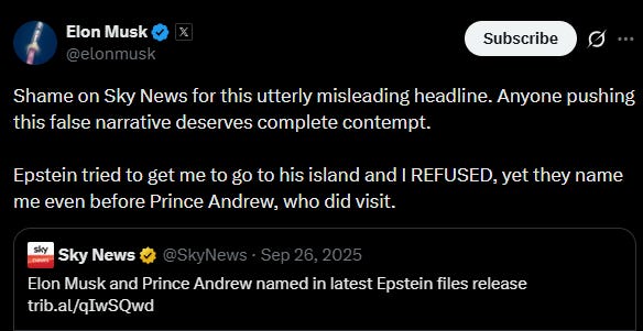 When excerpts of Musk’s and Epstein’s correspondence surfaced online, the framing was incriminating: Musk asking about parties on Epstein's island, cringe-worthy (fake) emails about "girls FTW," and the implication of a close relationship, earning Musk a star of the Walk of Shame.