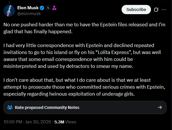 Yet when reading the emails in full and in sequence, the picture looks different. The files do not fully vindicate Musk — he accepted Epstein's island invitation twice, even if the plans never materialized. But they confirm that the relationship stayed superficial, that Musk repeatedly declined or ignored Epstein's overtures, and that the correspondence was minimal as Musk has claimed.