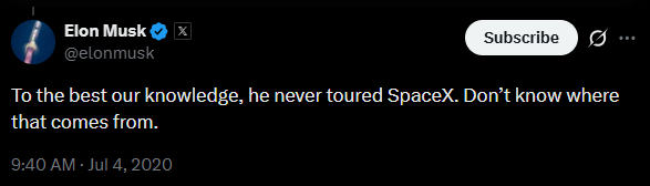 Besides the initial September lunch at his house, only one Epstein’s efforts materialized into an encounter. This was at a SpaceX tour on February 25 2013. In 2020, Musk said that Epstein never toured SpaceX “to the best our knowledge”. The files show the visit did happen and included a lunch between Epstein and Musk.